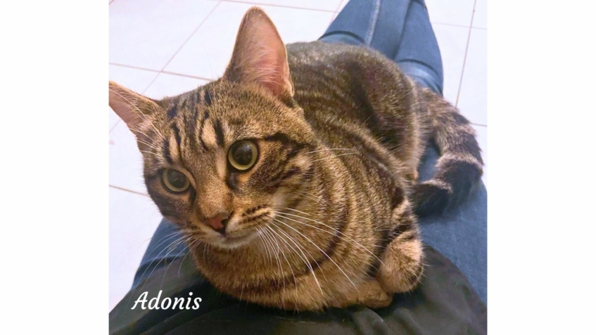 Salut, moi c’est Adonis et je suis un grand chaton câlin, un peu pot de colle et très gourmand 🐾💛