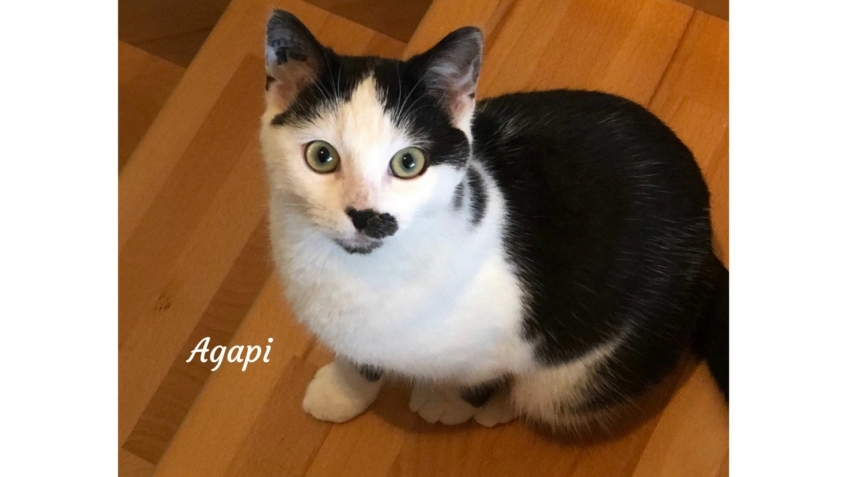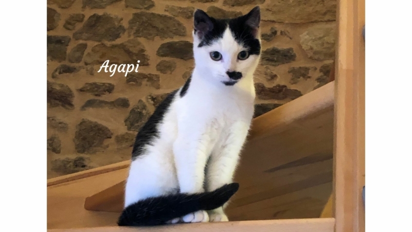 Salut, moi c’est Agapi et je suis un grand chaton à la bouille adorable, curieux, joueur et plein de potentiel 🐾😻