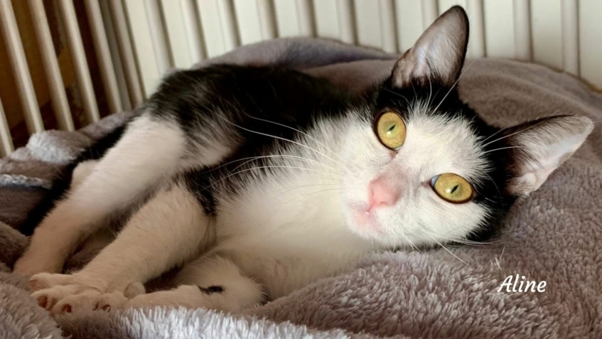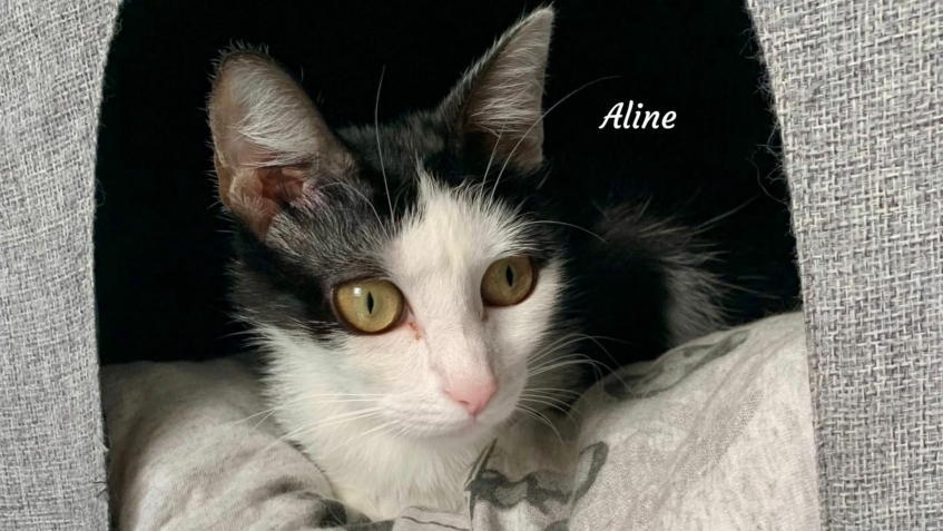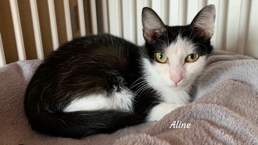 Salut, moi c’est Aline et je suis une grande chatonne trop mignonne… avec un tout petit gabarit, ce qui me donne l’air d’un chaton pour la vie 🐾💖