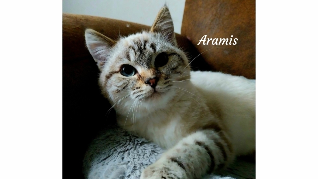 Salut, moi c’est Aramis 🤎🐾Comme dans l’histoire des Mousquetaires, je suis le tendre du trio : celui qui ne rêve que d’une chose… des câlins, des câlins et encore des câlins 😺💞 Je cherche constamment le contact, j’adore me blottir ...